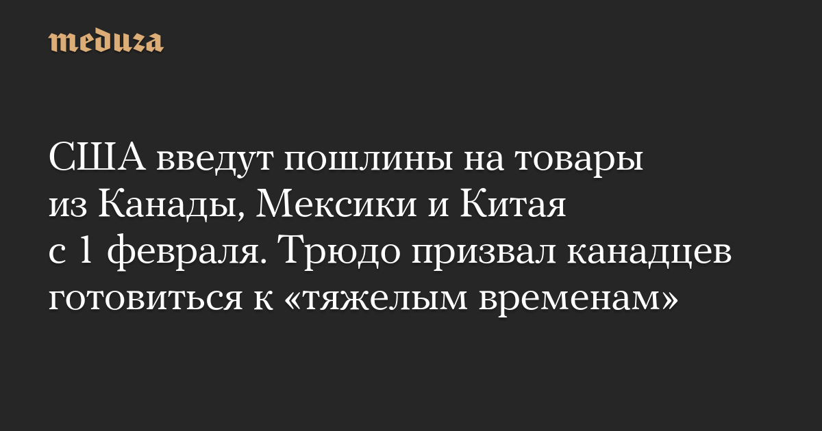 США введут пошлины на товары из Канады, Мексики и Китая с 1 февраля. Трюдо призвал канадцев готовиться к «тяжелым временам»