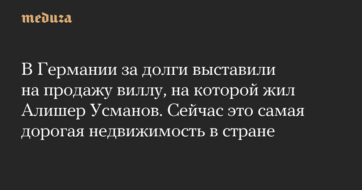 В Германии за долги выставили на продажу виллу, на которой жил Алишер Усманов. Сейчас это самая дорогая недвижимость в стране