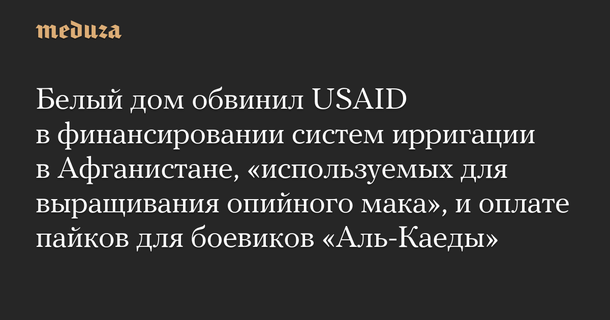 Белый дом обвинил USAID в финансировании систем ирригации в Афганистане, «используемых для выращивания опийного мака», и оплате пайков для боевиков «Аль-Каеды»