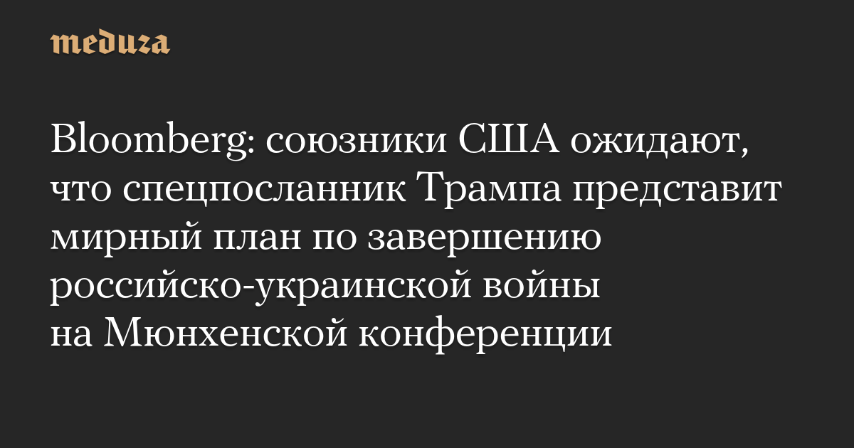Bloomberg: союзники США ожидают, что спецпосланник Трампа представит мирный план по завершению российско-украинской войны на Мюнхенской конференции