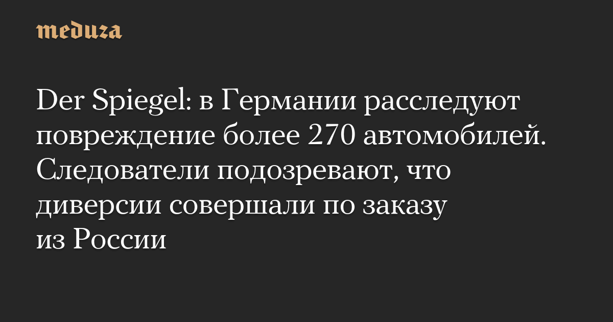 Der Spiegel: в Германии расследуют повреждение более 270 автомобилей. Следователи подозревают, что диверсии совершали по заказу из России