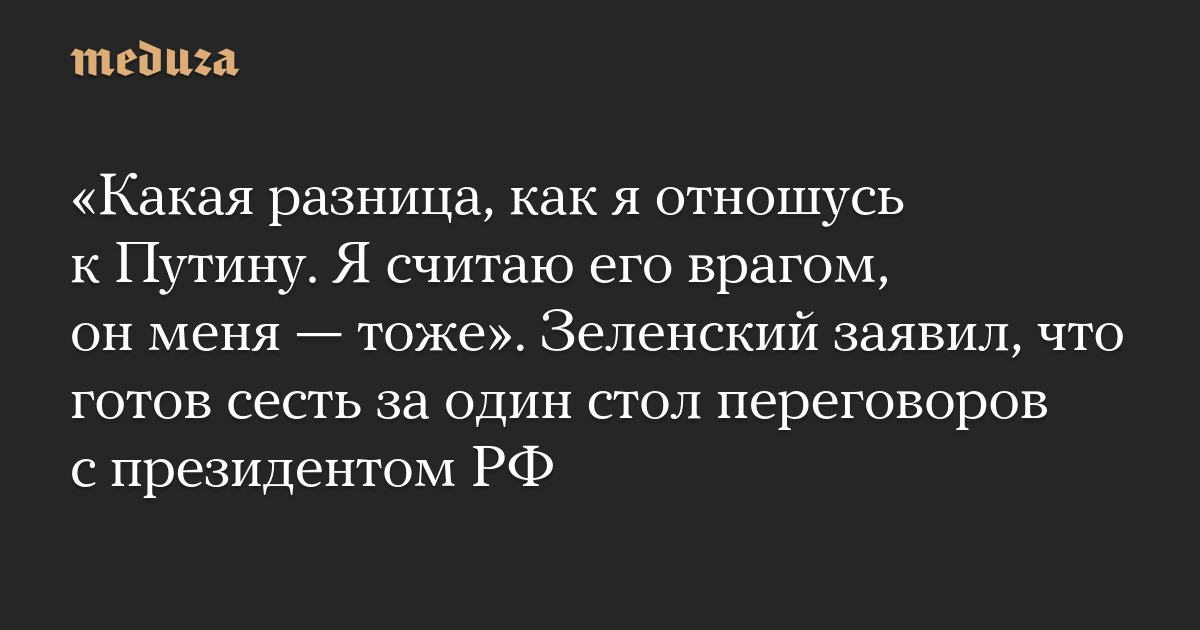 «Какая разница, как я отношусь к Путину. Я считаю его врагом, он меня — тоже». Зеленский заявил, что готов сесть за один стол переговоров с президентом РФ