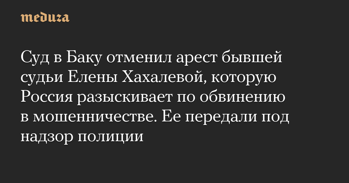 Суд в Баку отменил арест бывшей судьи Елены Хахалевой, которую Россия разыскивает по обвинению в мошенничестве. Ее передали под надзор полиции