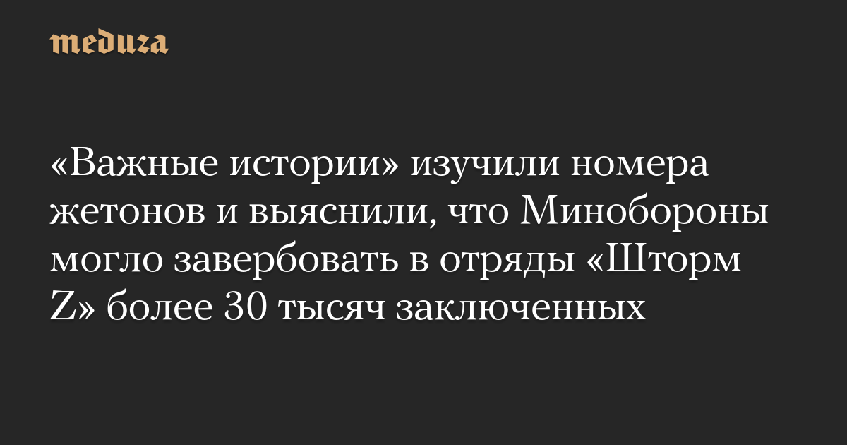 «Важные истории» изучили номера жетонов и выяснили, что Минобороны могло завербовать в отряды «Шторм Z» более 30 тысяч заключенных