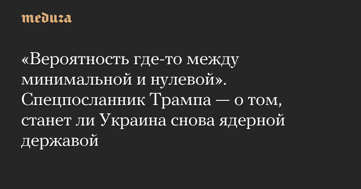 «Вероятность где-то между минимальной и нулевой». Спецпосланник Трампа — о том, станет ли Украина снова ядерной державой