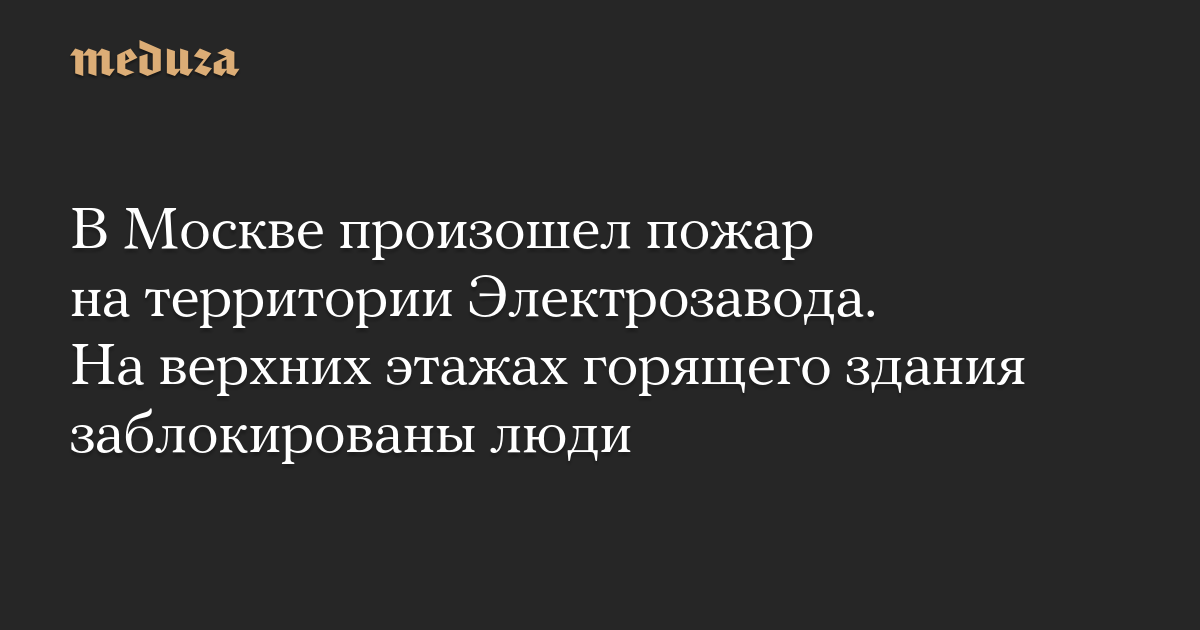 В Москве произошел пожар на территории Электрозавода. На верхних этажах горящего здания заблокированы люди