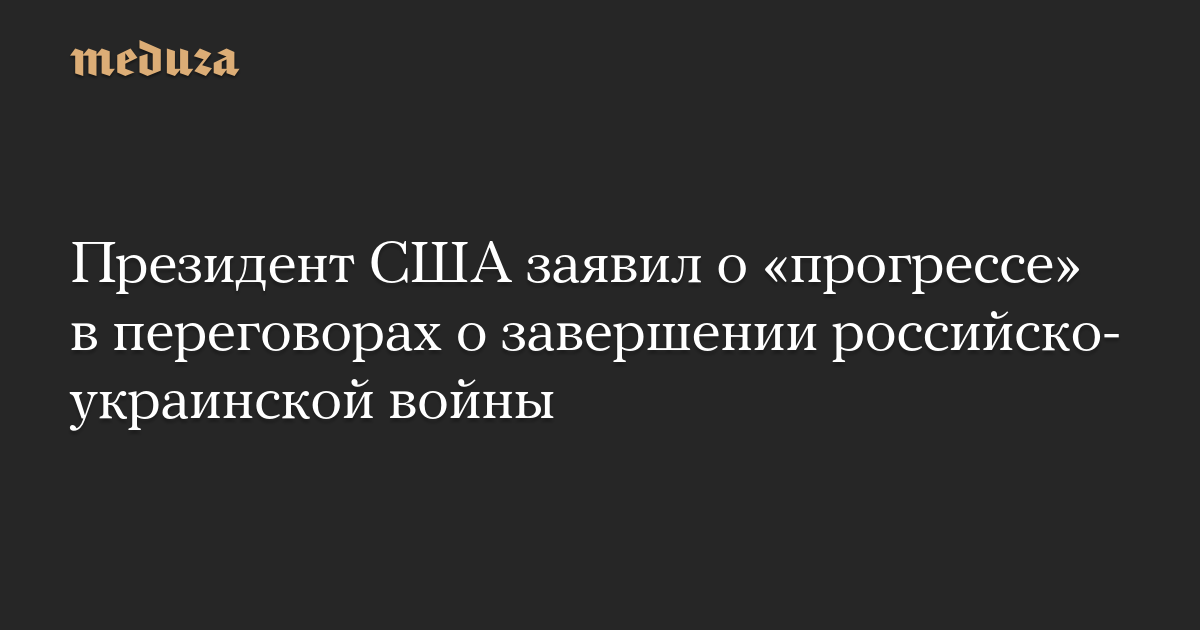 Президент США заявил о «прогрессе» в переговорах о завершении российско-украинской войны