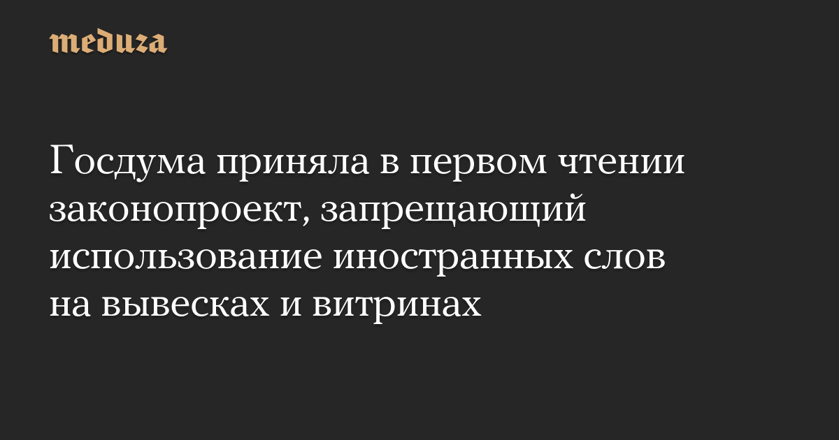 Госдума приняла в первом чтении законопроект, запрещающий использование иностранных слов на вывесках и витринах
