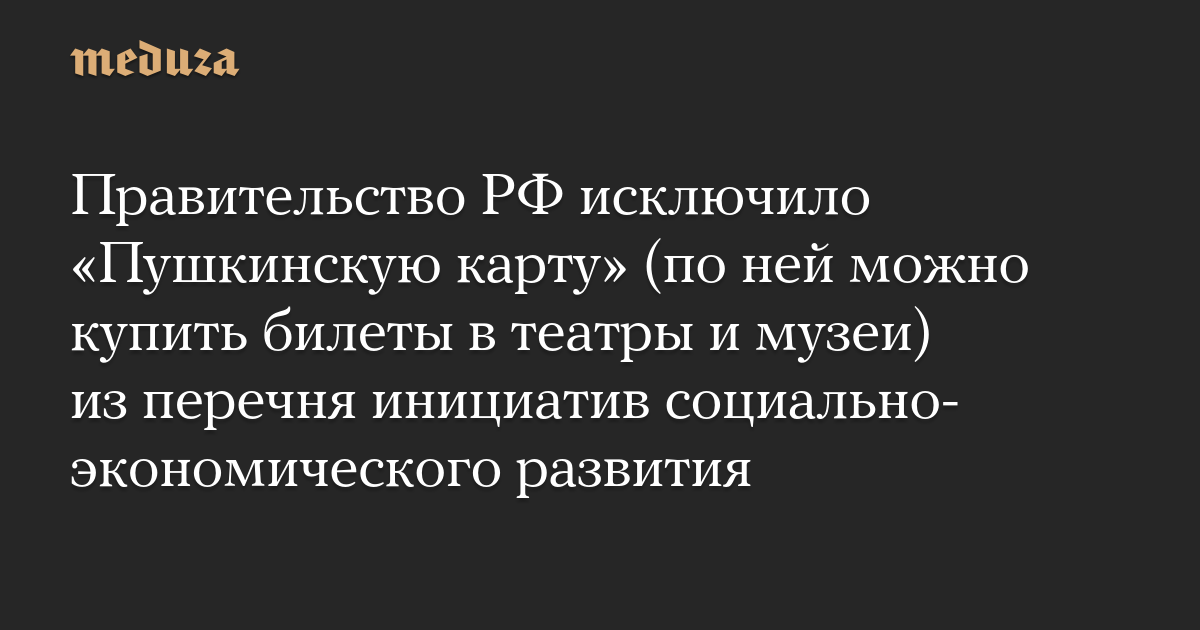 Правительство РФ исключило «Пушкинскую карту» (по ней можно купить билеты в театры и музеи) из перечня инициатив социально-экономического развития