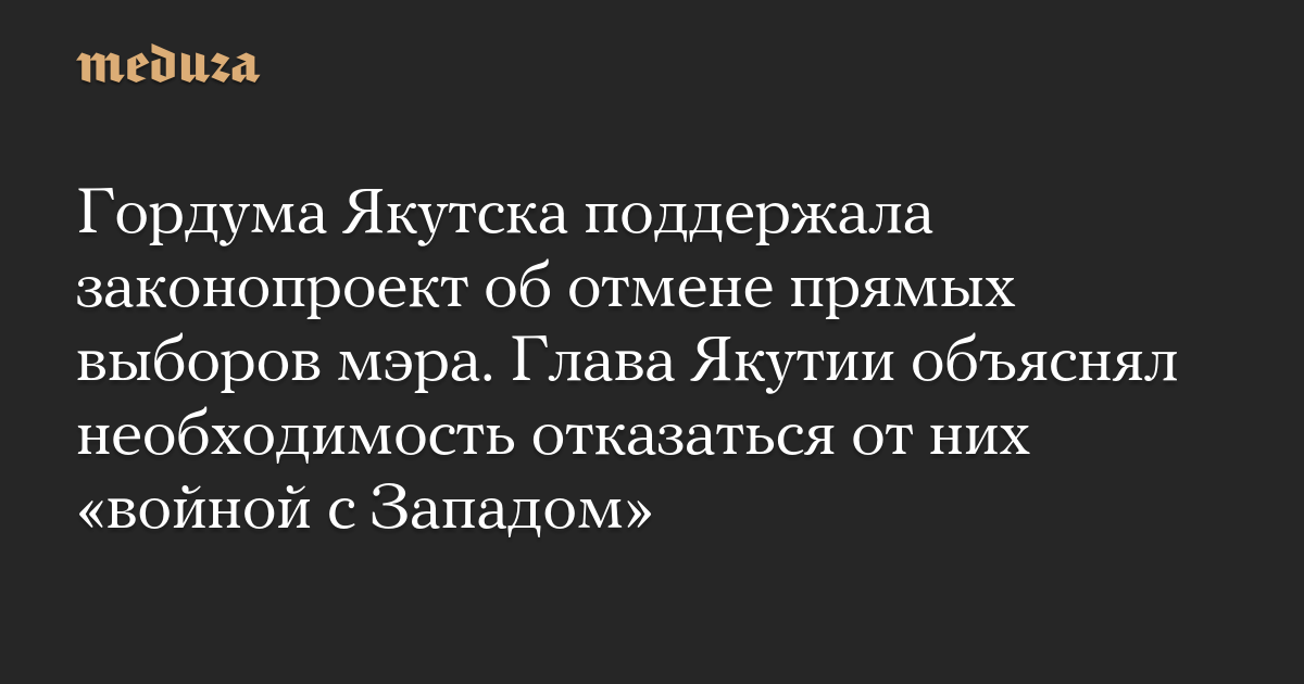 Гордума Якутска поддержала законопроект об отмене прямых выборов мэра. Глава Якутии объяснял необходимость отказаться от них «войной с Западом»