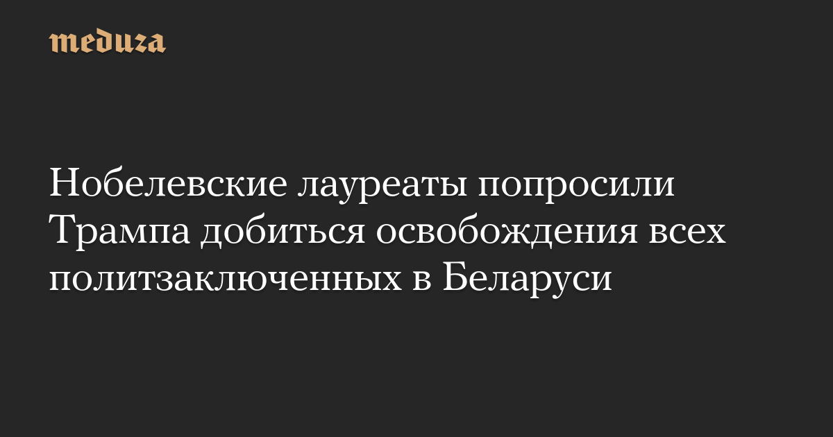 Нобелевские лауреаты попросили Трампа добиться освобождения всех политзаключенных в Беларуси