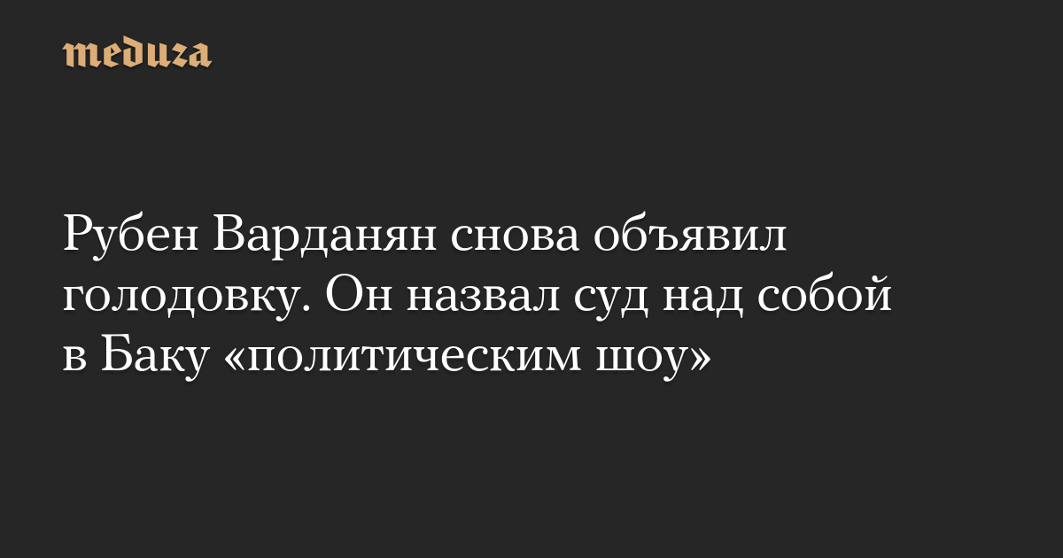 Рубен Варданян называет голодовку «ответом на грубейшие нарушения норм международного и азербайджанского процессуального права». «То, что происходит в зале суда, нельзя назвать судом — это политическое шоу, в котором демонстративно игнорируют мои права на справедливое разбирательство», — пишет Варданян.