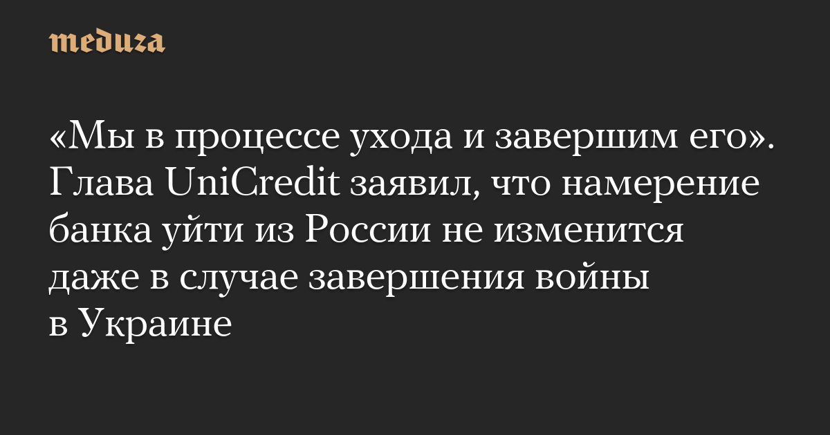 «Мы в процессе ухода и завершим его». Глава UniCredit заявил, что намерение банка уйти из России не изменится даже в случае завершения войны в Украине