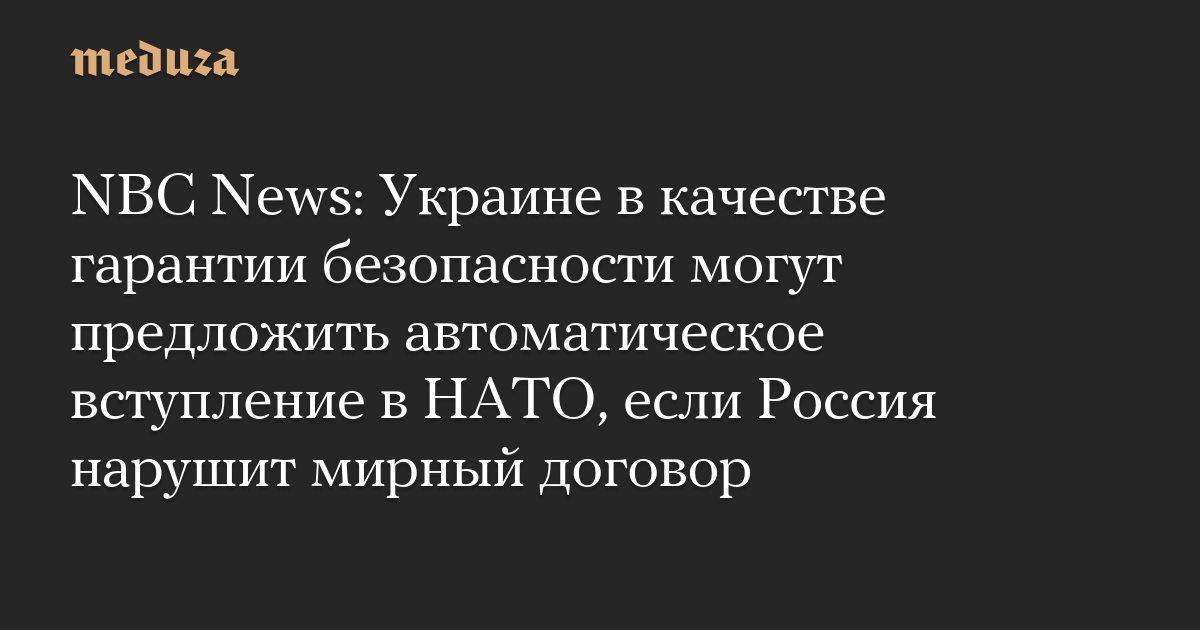 NBC News: Украине в качестве гарантии безопасности могут предложить автоматическое вступление в НАТО, если Россия нарушит мирный договор