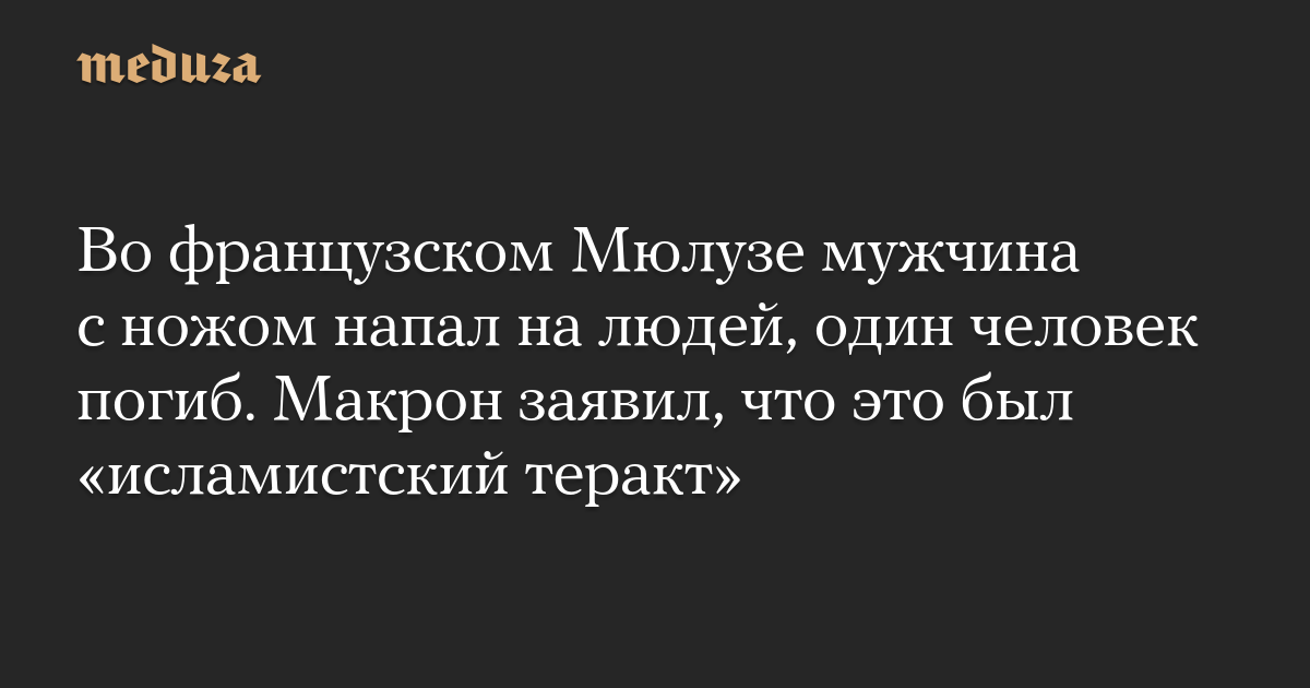 Во французском Мюлузе мужчина с ножом напал на людей, один человек погиб. Макрон заявил, что это был «исламистский теракт»