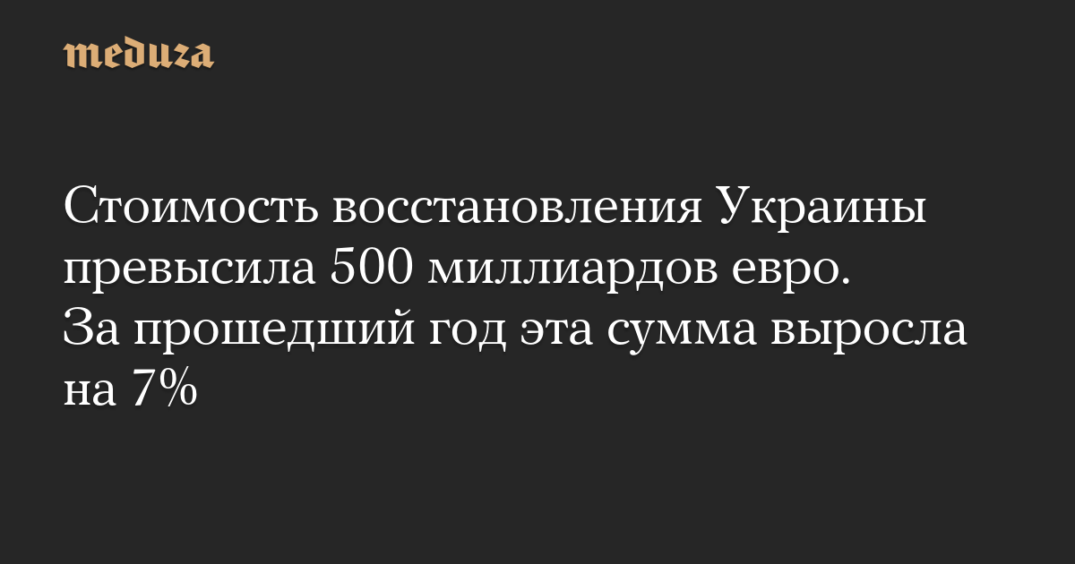 В начале 2024 года оценка стоимости восстановления Украины составляла 486 миллиардов долларов. За прошедший год она выросла более чем на 7%.