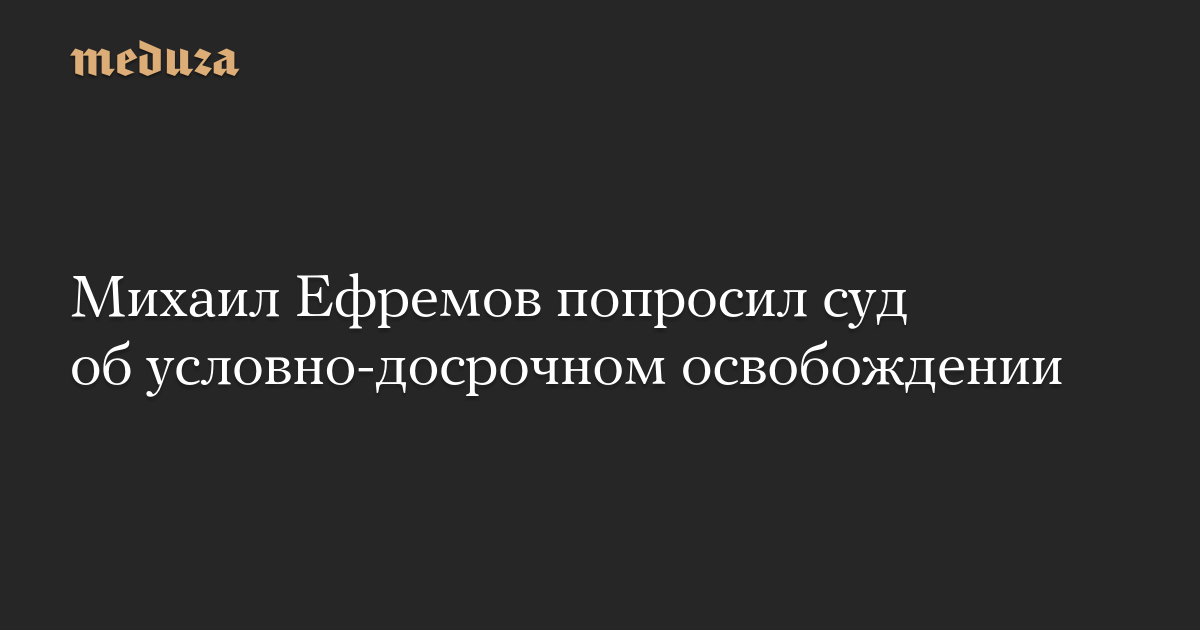 В январе 2023-го Ефремов подавал ходатайство о замене тюремного срока принудительными работами, но позже попросил суд о прекращении производства. Весной 2024-го сообщалось, что администрация белгородской колонии, где отбывает наказание Ефремов, поддержала его ходатайство об условно-досрочном освобождении. Однако тогда документы об УДО в суд так и не поступили.