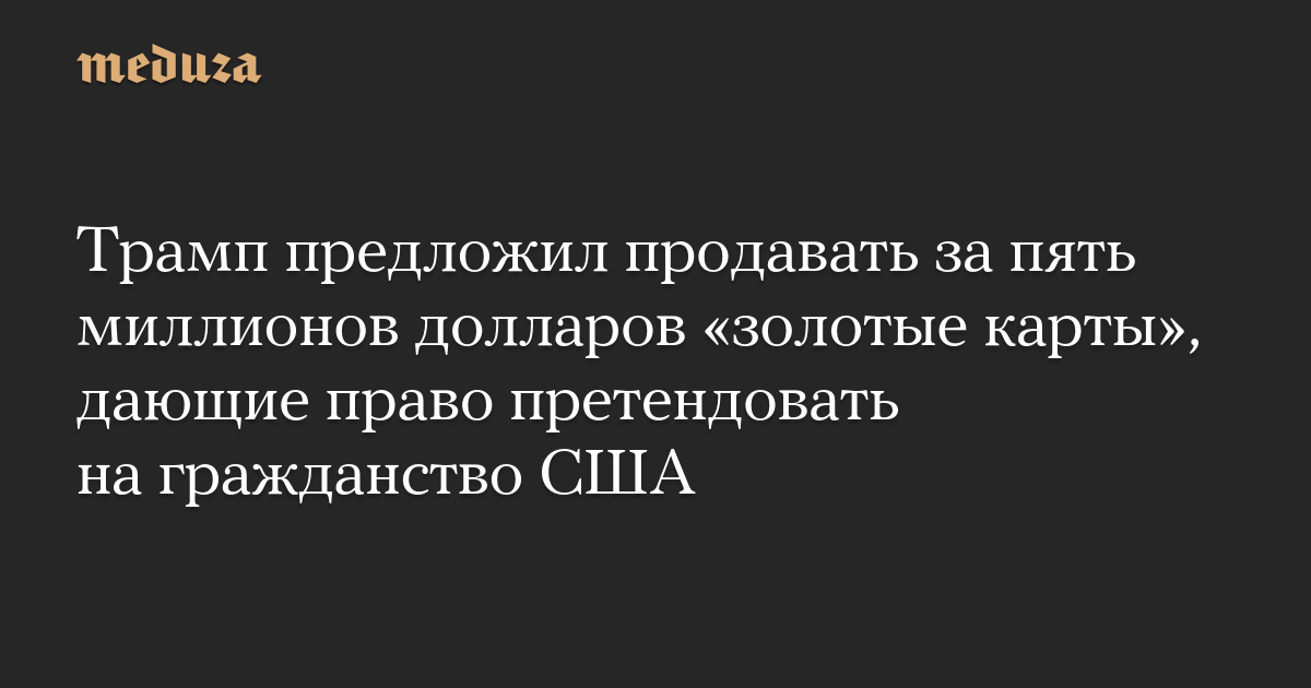 Президент США Дональд Трамп предложил ввести «золотые карты», дающие право на постоянное место жительства в США и открывающие путь к получению американского гражданства за пять миллионов долларов.