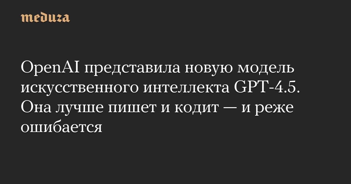 OpenAI представила новую модель искусственного интеллекта GPT-4.5. Она лучше пишет и кодит — и реже ошибается