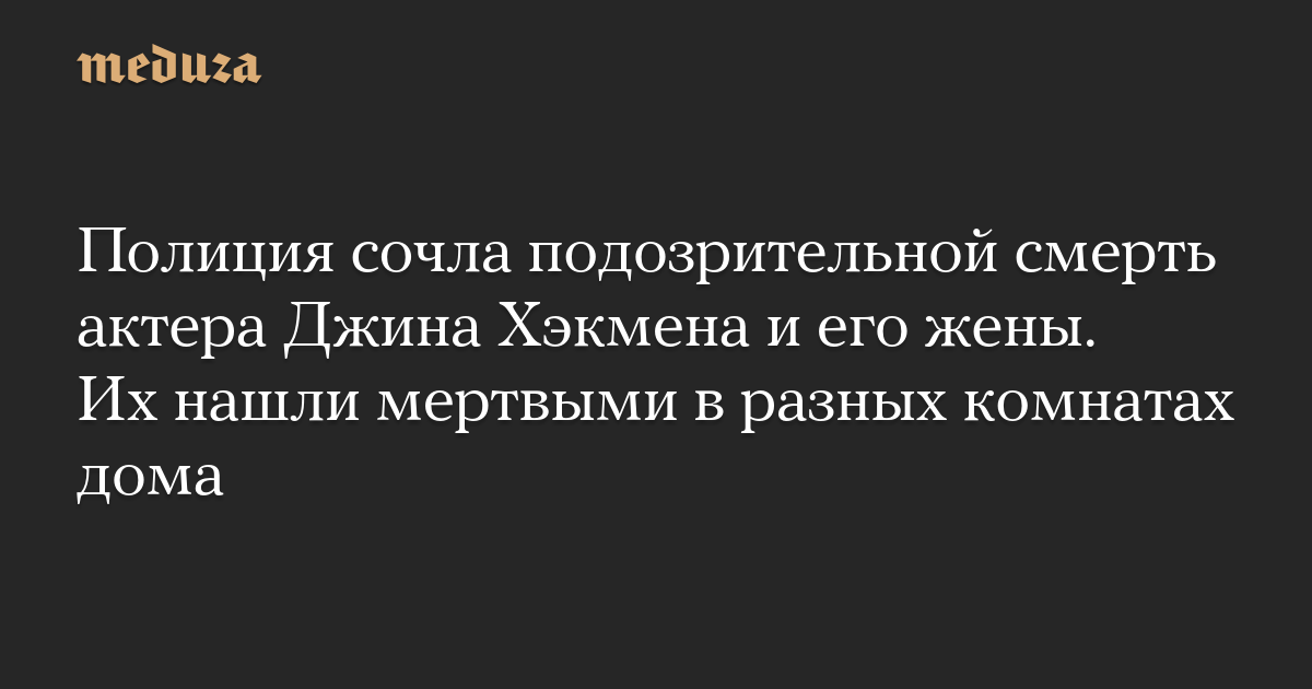 Полиция сочла подозрительной смерть актера Джина Хэкмена и его жены. Их нашли мертвыми в разных комнатах дома