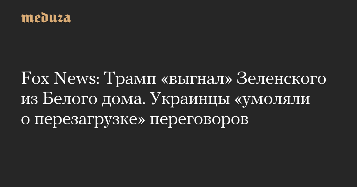 Fox News: Трамп «выгнал» Зеленского из Белого дома. Украинцы «умоляли о перезагрузке» переговоров