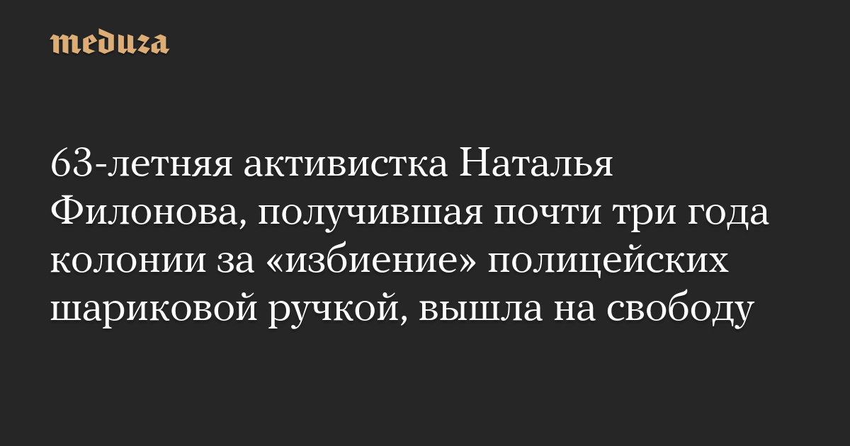 63-летняя активистка Наталья Филонова, получившая почти три года колонии за «избиение» полицейских шариковой ручкой, вышла на свободу