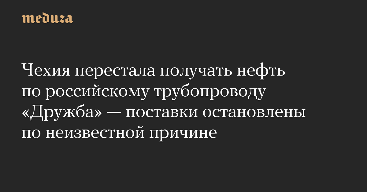 Чехия перестала получать нефть по российскому трубопроводу «Дружба» — поставки остановлены по неизвестной причине