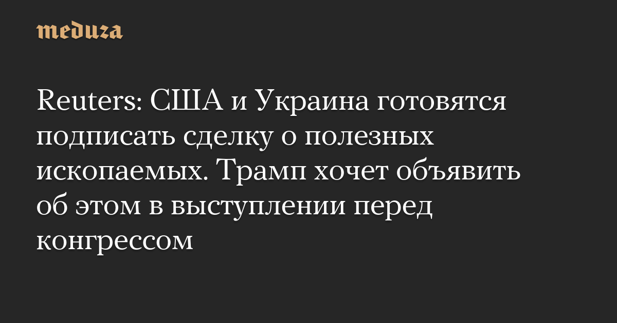 Reuters: США и Украина готовятся подписать сделку о полезных ископаемых. Трамп хочет объявить об этом в выступлении перед конгрессом