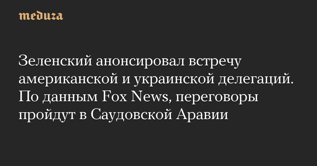 Зеленский анонсировал встречу американской и украинской делегаций. По данным Fox News, переговоры пройдут в Саудовской Аравии