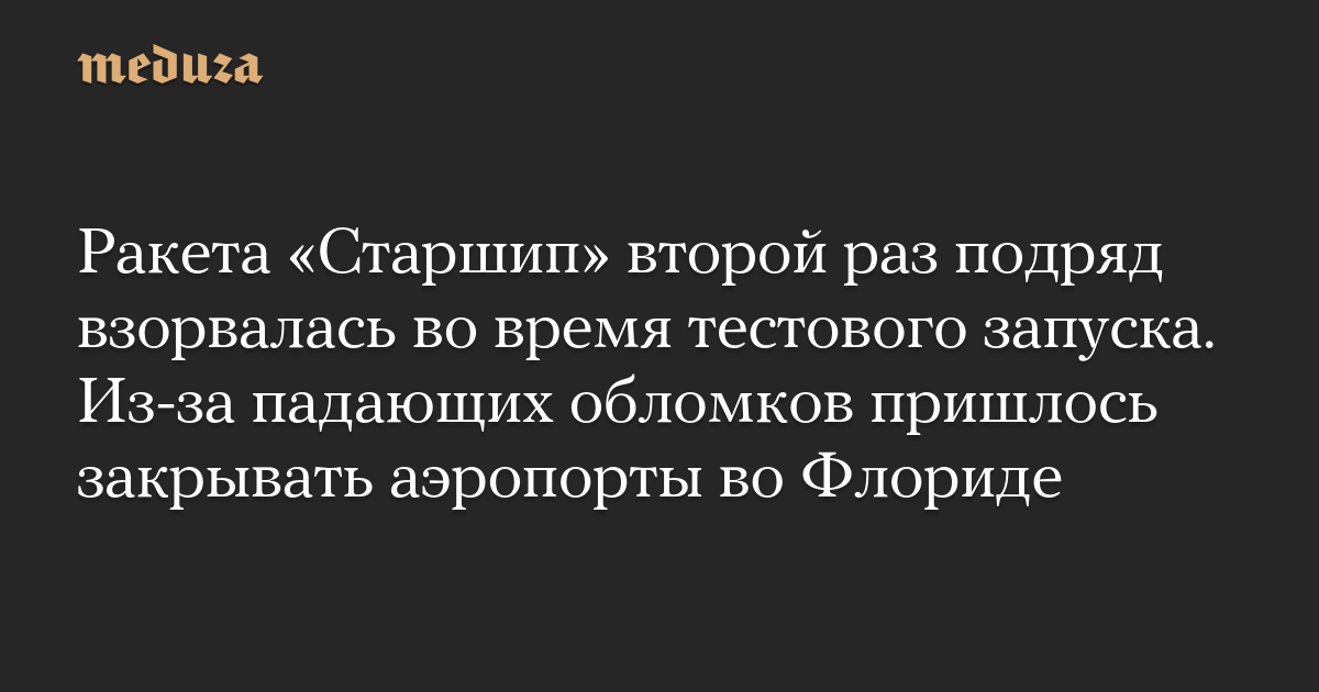 Ракета «Старшип» второй раз подряд взорвалась во время тестового запуска. Из-за падающих обломков пришлось закрывать аэропорты во Флориде