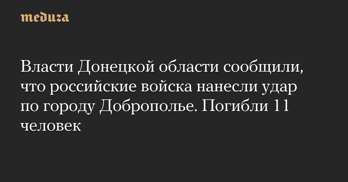 Власти Донецкой области сообщили, что российские войска нанесли удар по городу Доброполье. Погибли 11 человек