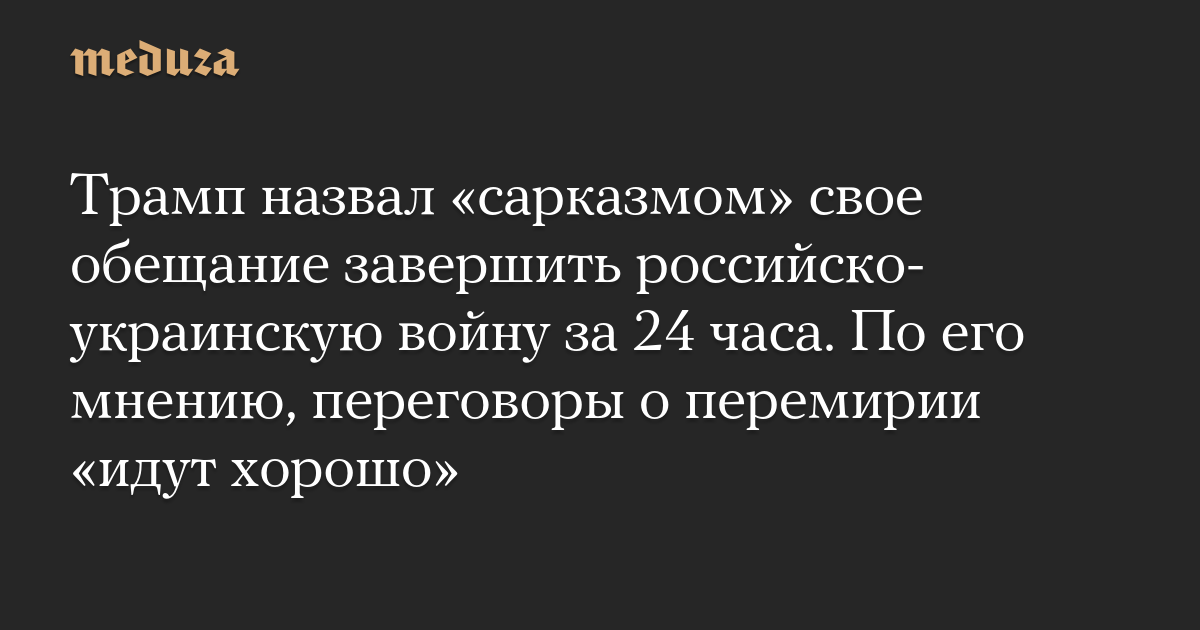 Трамп назвал «сарказмом» свое обещание завершить российско-украинскую войну за 24 часа. По его мнению, переговоры о перемирии «идут хорошо»