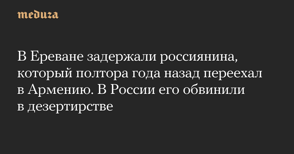 В Ереване задержали гражданина России Николая Зонова, который уехал из РФ в 2023 году. Жена россиянина Аревик Зонова рассказала «Новой газете Европа», что в России мужу вменили статью о самовольном оставлении части (часть 5 статьи 337 УК) и объявили в розыск. Информация о задержании Зонова также опубликована в его инстаграме.