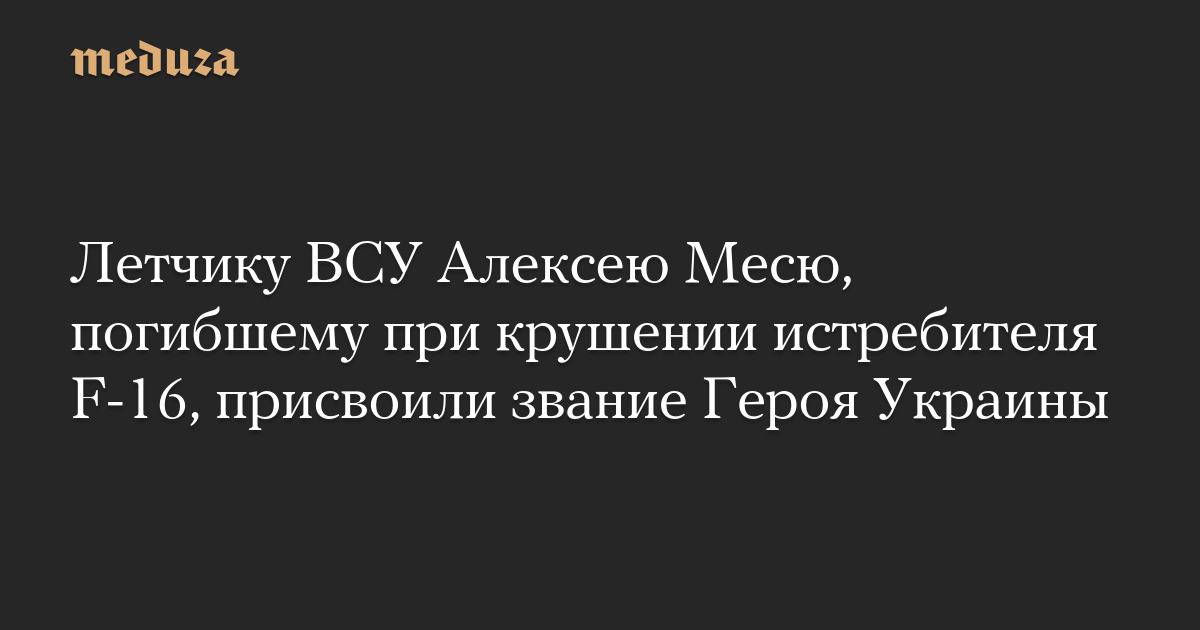 Летчику ВСУ Алексею Месю, погибшему при крушении истребителя F-16, присвоили звание Героя Украины