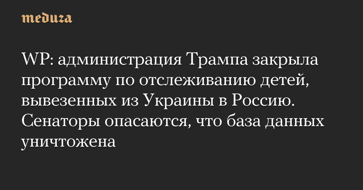WP: администрация Трампа закрыла программу по отслеживанию детей, вывезенных из Украины в Россию. Сенаторы опасаются, что база данных уничтожена