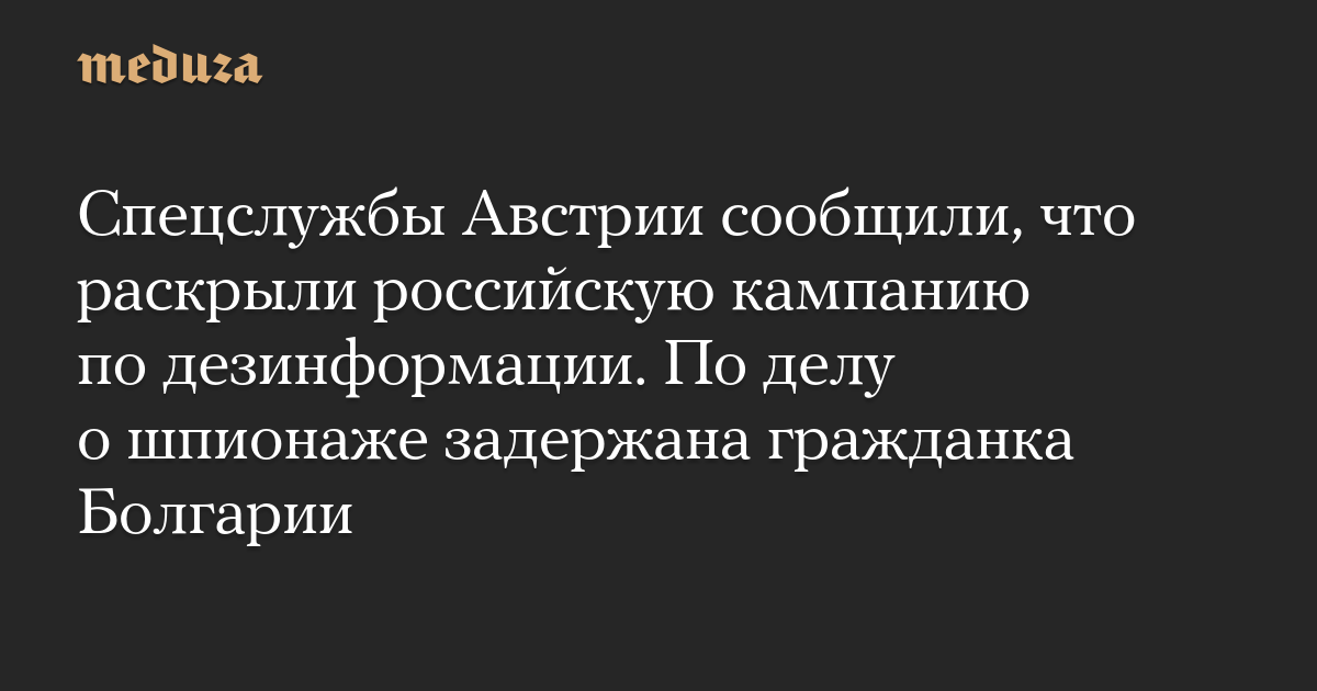 Спецслужбы Австрии сообщили, что раскрыли российскую кампанию по дезинформации. По делу о шпионаже задержана гражданка Болгарии