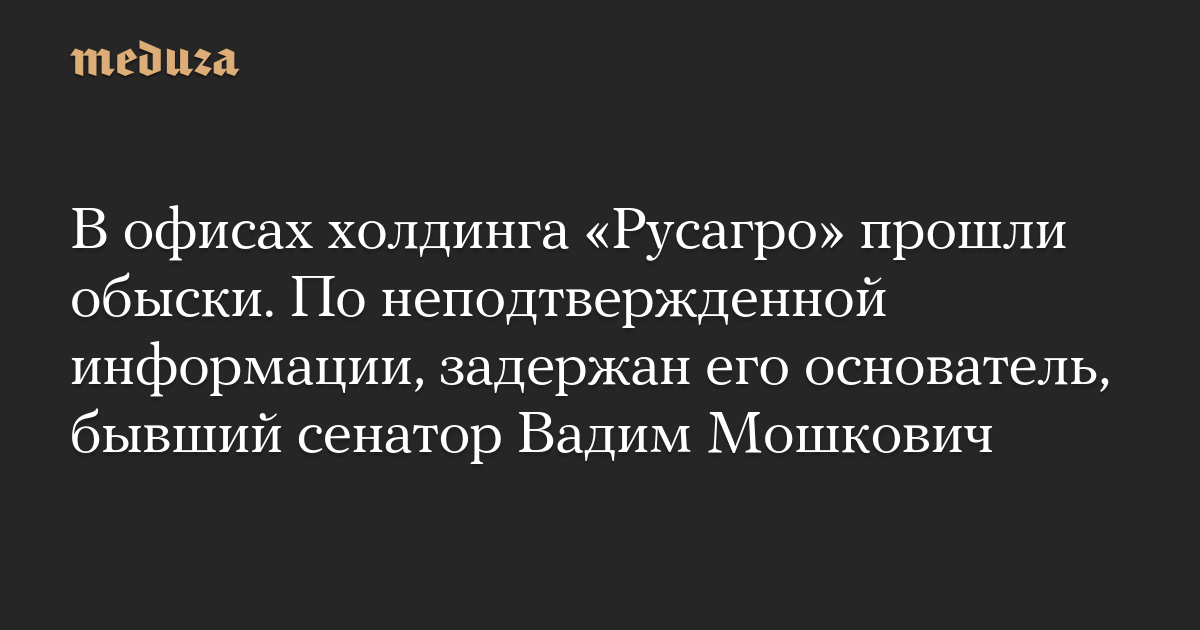 В офисах холдинга «Русагро» прошли обыски. По неподтвержденной информации, задержан его основатель, бывший сенатор Вадим Мошкович