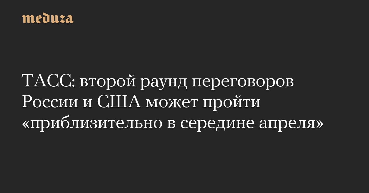 ТАСС: второй раунд переговоров России и США может пройти «приблизительно в середине апреля»