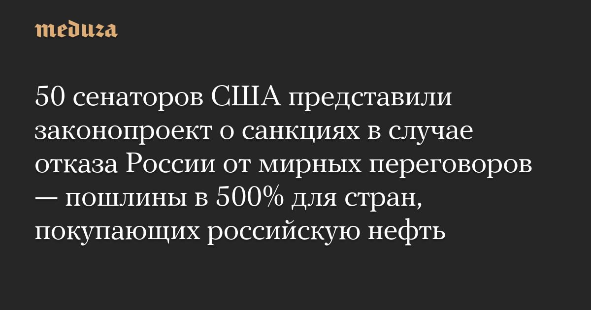 50 сенаторов США представили законопроект о санкциях в случае отказа России от мирных переговоров — пошлины в 500% для стран, покупающих российскую нефть