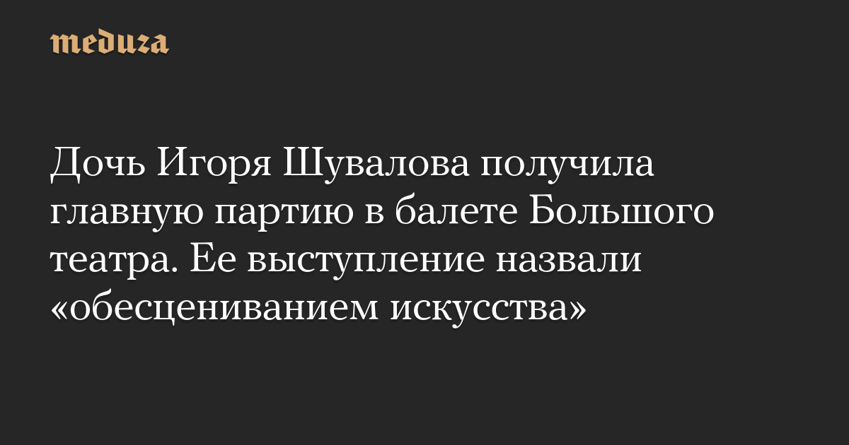 Дочь Игоря Шувалова получила главную партию в балете Большого театра. Ее выступление назвали «обесцениванием искусства»