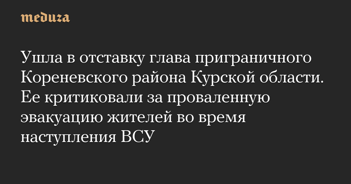 Ушла в отставку глава приграничного Кореневского района Курской области. Ее критиковали за проваленную эвакуацию жителей во время наступления ВСУ