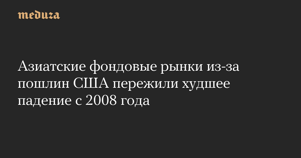 Азиатские фондовые рынки из-за пошлин США пережили худшее падение с 2008 года