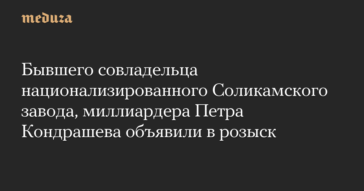 Бывшего совладельца национализированного Соликамского завода, миллиардера Петра Кондрашева объявили в розыск
