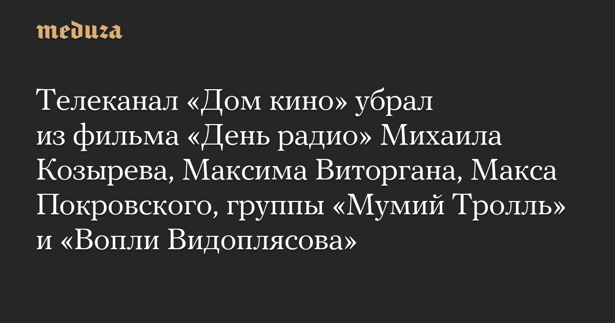 Телеканал «Дом кино» убрал из фильма «День радио» Михаила Козырева, Максима Виторгана, Макса Покровского, группы «Мумий Тролль» и «Вопли Видоплясова»