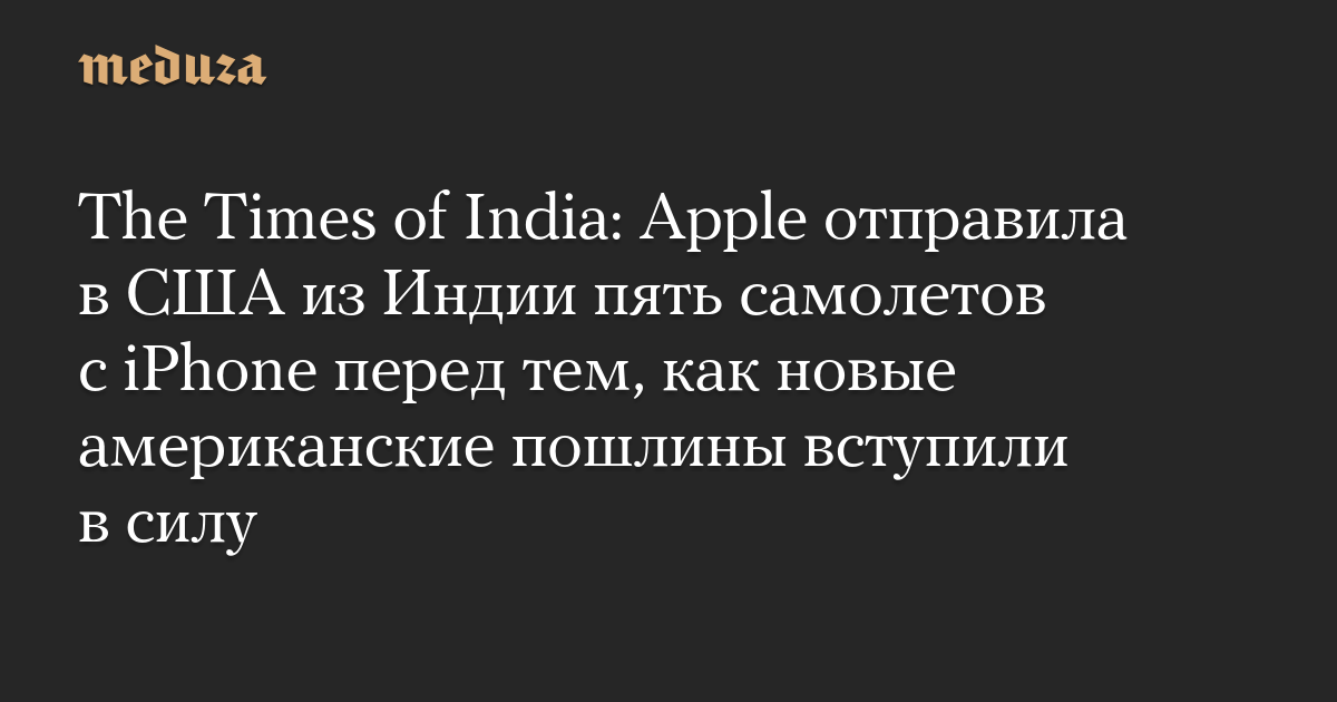 The Times of India: Apple отправила в США из Индии пять самолетов с iPhone перед тем, как новые американские пошлины вступили в силу