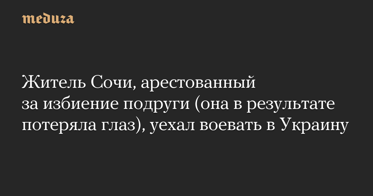Житель Сочи, арестованный за избиение подруги (она в результате потеряла глаз), уехал воевать в Украину