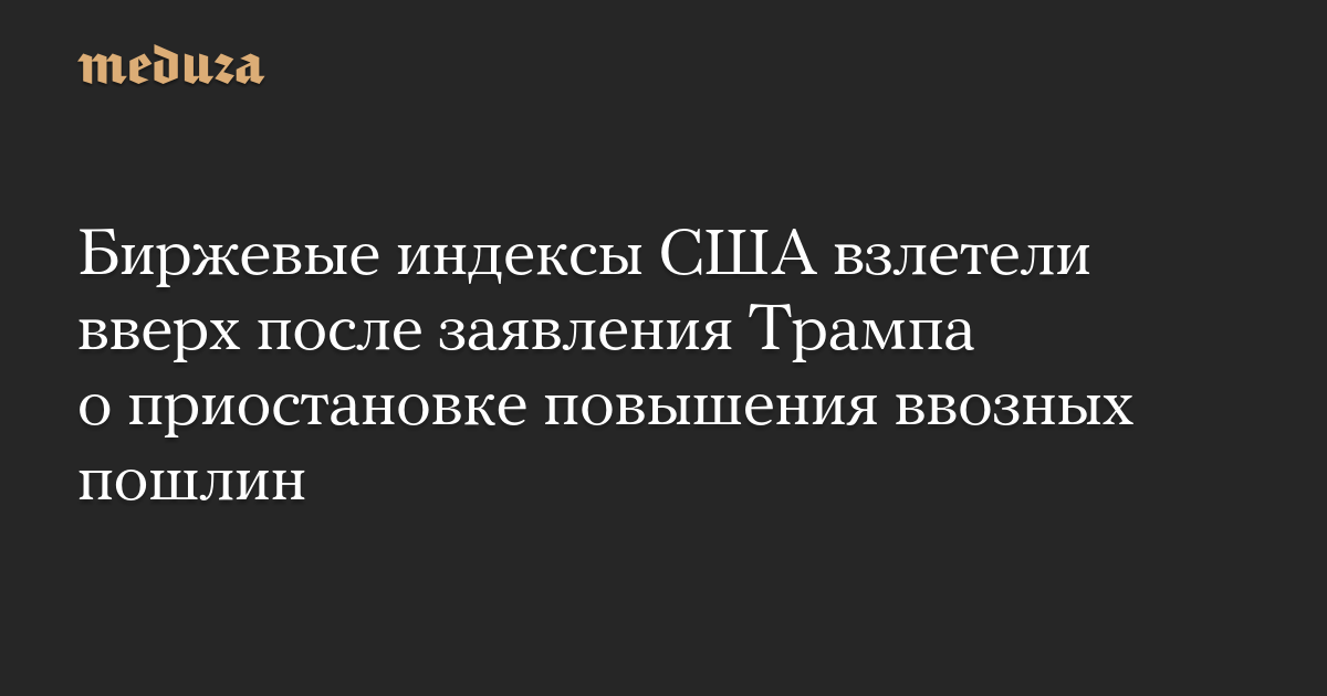 Котировки акций на американских биржах резко выросли после того, как президент США объявил о приостановке на 90 дней повышения ввозных пошлин для большинства стран мира.