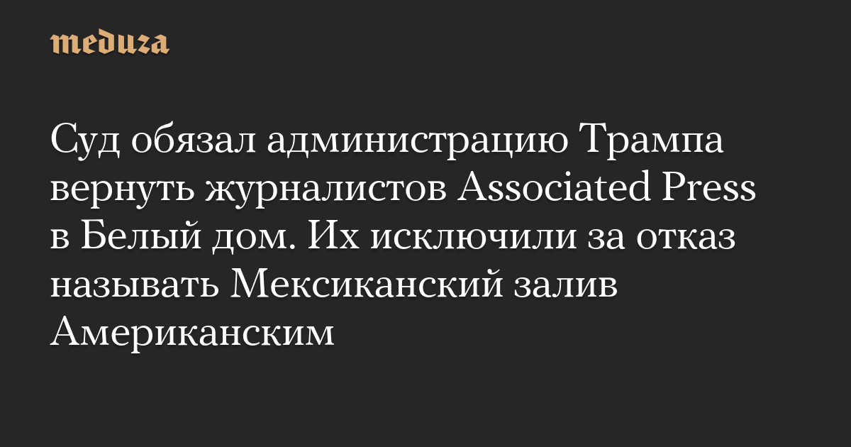 Суд обязал администрацию Трампа вернуть журналистов Associated Press в Белый дом. Их исключили за отказ называть Мексиканский залив Американским