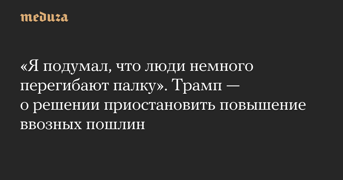 «Я подумал, что люди немного перегибают палку». Трамп — о решении приостановить повышение ввозных пошлин