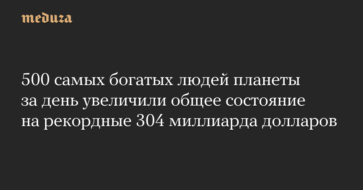 500 самых богатых людей планеты за день увеличили общее состояние на рекордные 304 миллиарда долларов